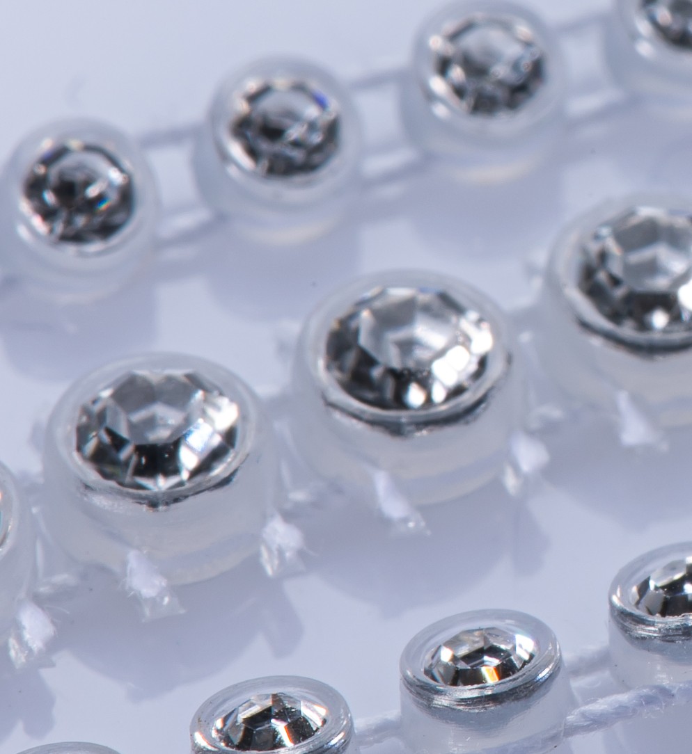As bandas plásticas são muito utilizadas em confecções, para serem costuradas em diversas aplicações diferentes. São conhecidas também por "gallones". São feitas de strass cravados em correntes ou telas plástica para costura.